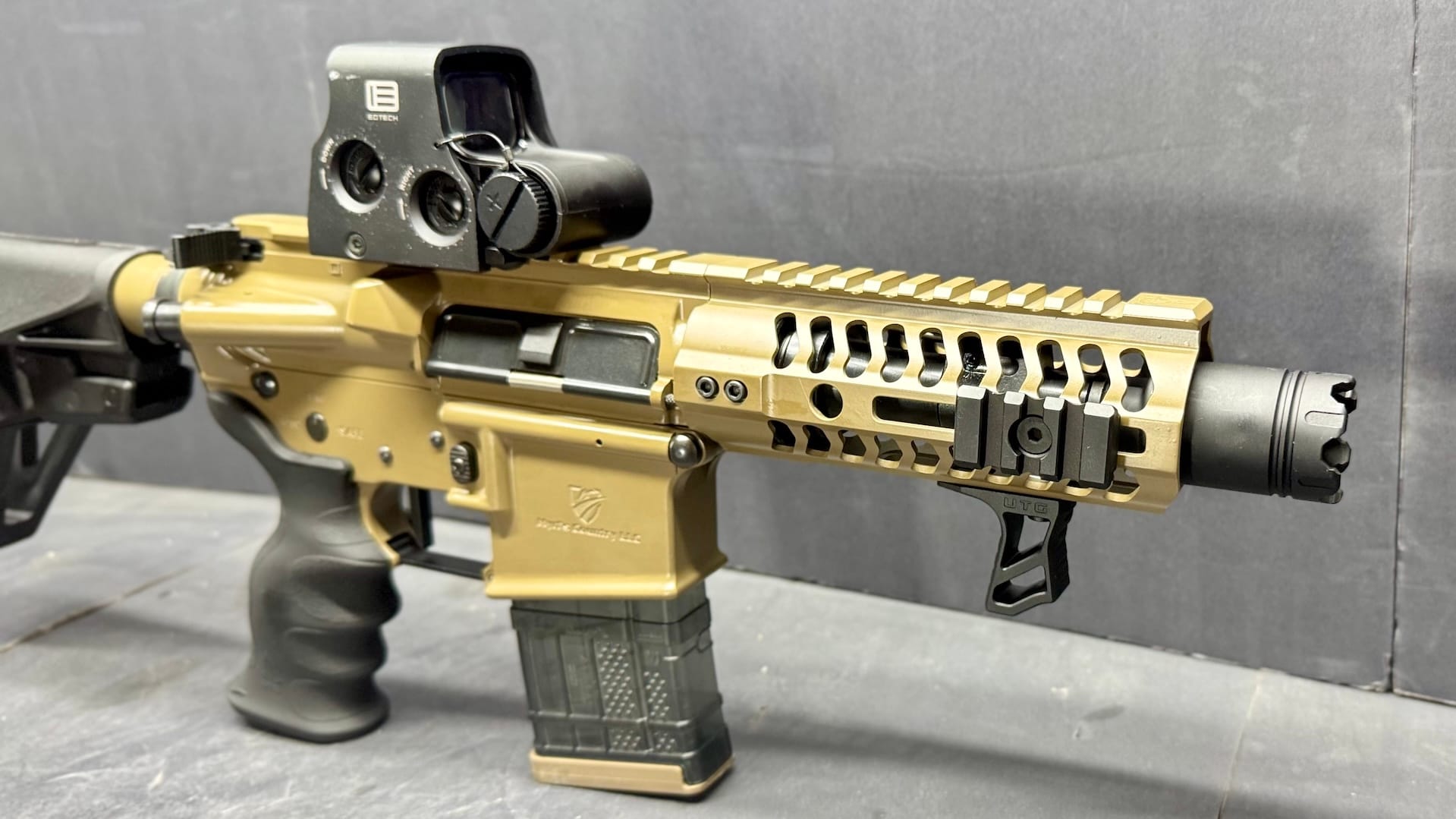Outfitted with an SBA5 pistol brace, ambidextrous charging handle, ergonomic grip, and compact BCM Picatinny rail, the FDE Micro Zombie is balanced for rapid target acquisition and controlled follow-up shots. Function-tested and mission-ready — no upgrades required.