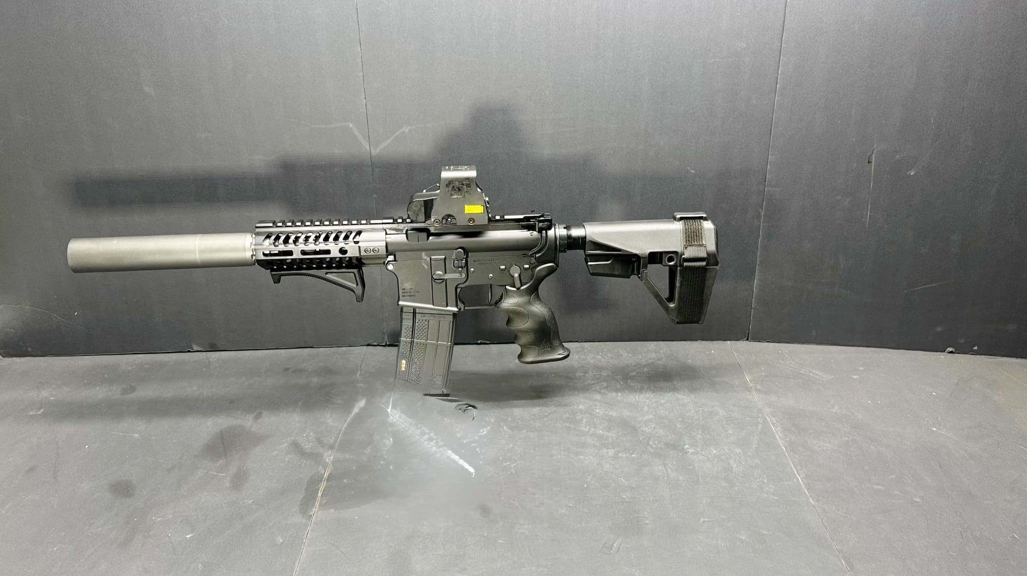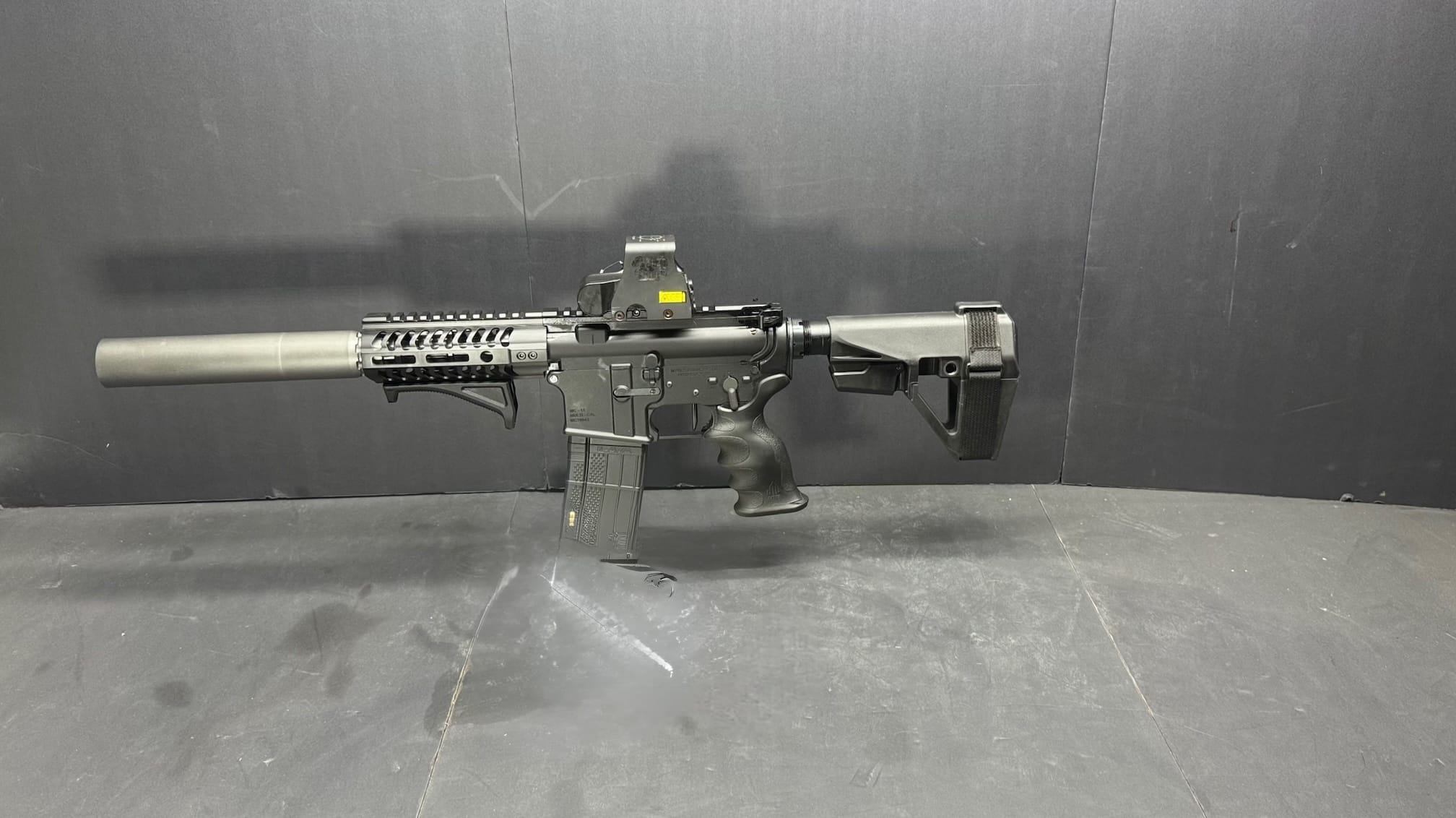 Introducing the Suppressed Micro 300 AAC Blackout AR Pistol, engineered specifically for high-stress, close-quarters home defense. Every detail of this firearm is optimized for low visibility, reduced recoil, and maximum control. Whether you’re moving through tight spaces or need precision under pressure, this blackout beast delivers.